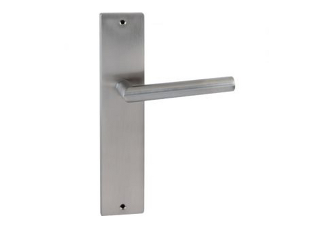 Manilla modelo MRC-530 con placa rectangular de para puertas en acabado níquel satinado de aluminio para puertas de interior