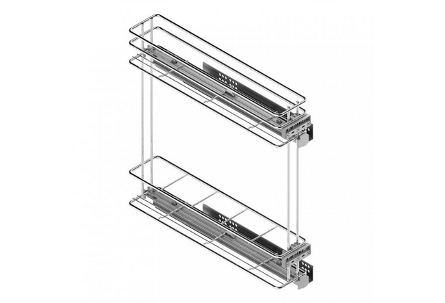 Este botellero con guias correderas se añade a un cajón modular de cocina. Tiene unas medidas de 15x50cm